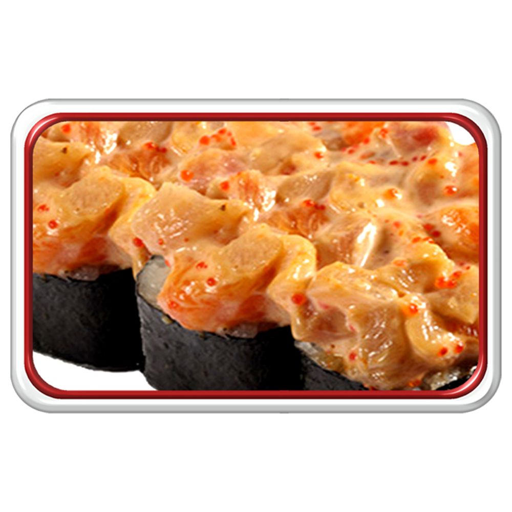 Лосось с/с, спайси соус, снежный краб, майонез, огурцы, икра Тобико, рис.