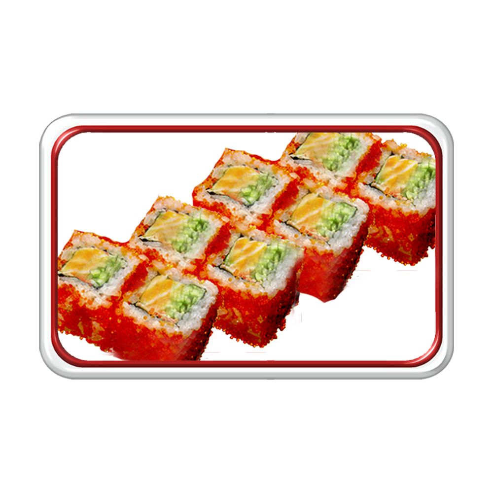 Лосось с/c, огурцы, майонез, икра Тобико, рис.