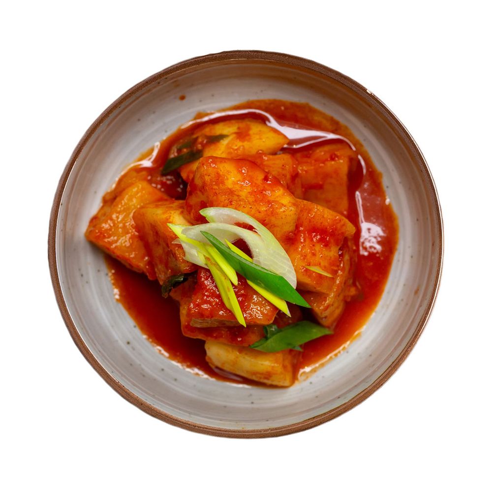 Kakdugi - Spicy pickled daikon. Салат из дайкона с острым соусом.
