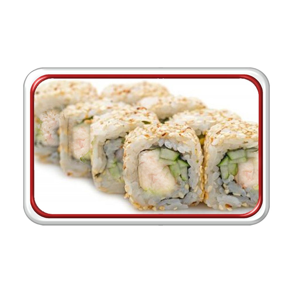 Снежный краб, огурцы, майонез, кунжут, рис.