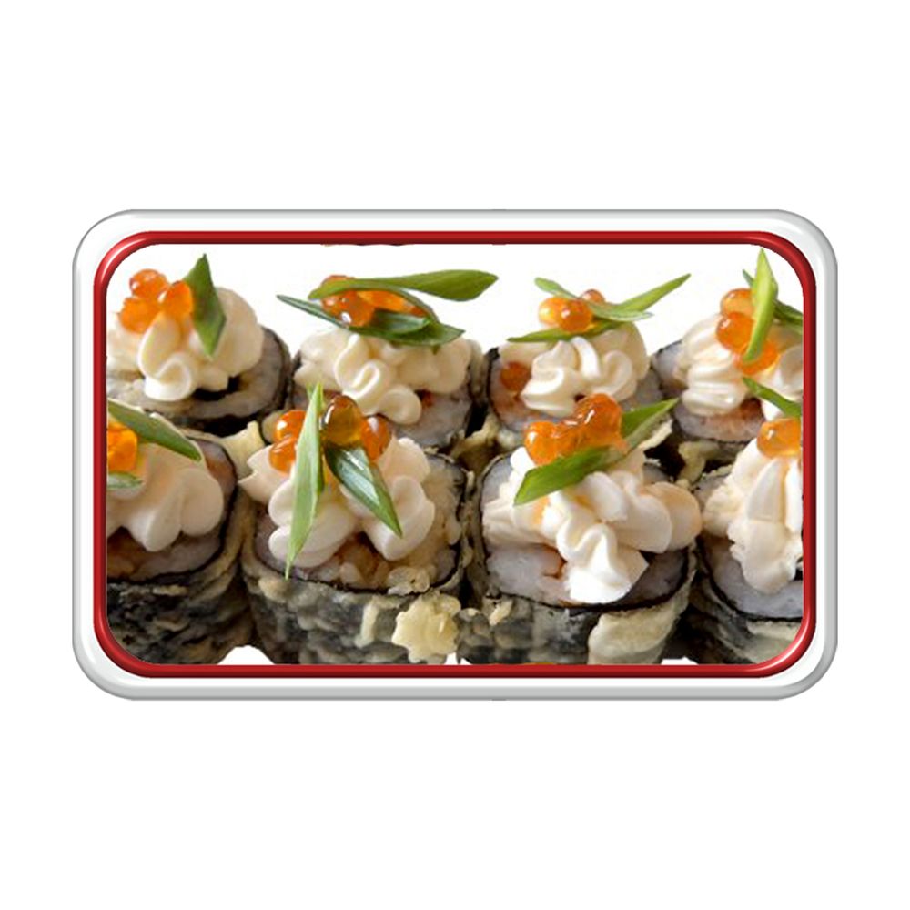 Снежный краб, майонез, сливочный сыр, зеленый лук, огурцы, красная икра, рис.