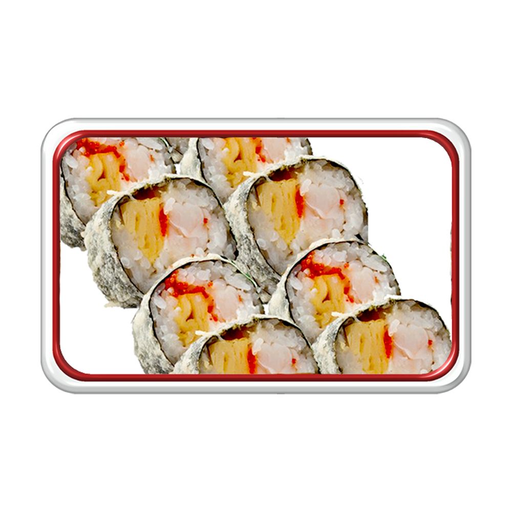 Снежный краб, омлет, сливочный сыр, икра Тобико, рис.