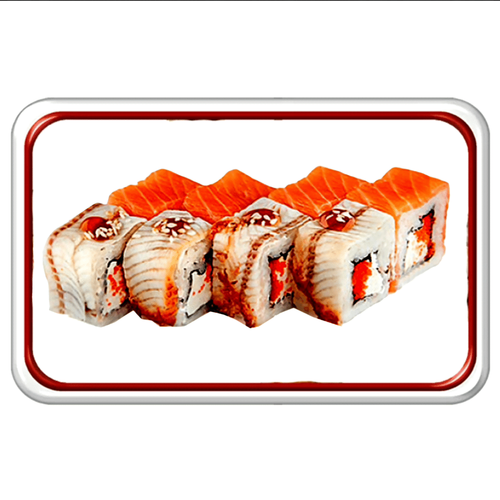 Ролл с лососем и угрём, творожным сыром и икрой Тобико.