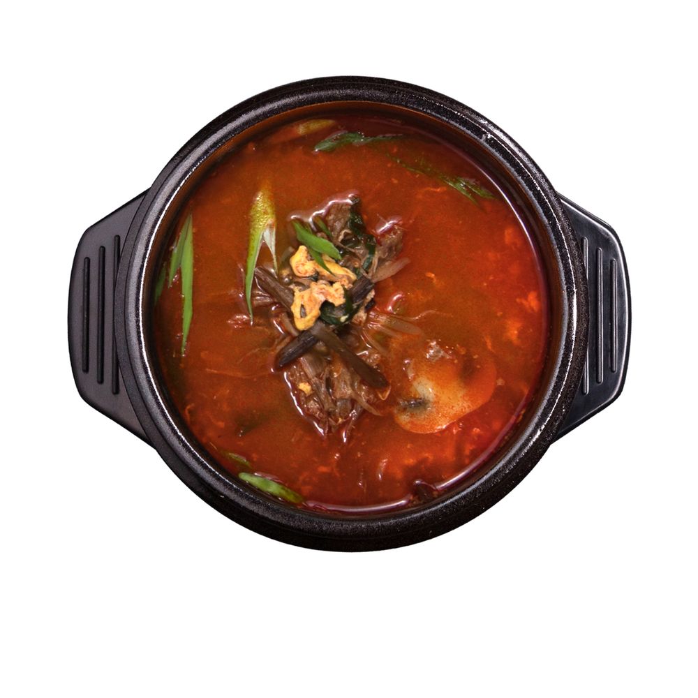 Yukgaejang - Spicy soup with beef, vegetables, glass noodles and bracken. Острый суп с говядиной, крахмальной лапшой и папоротником.
