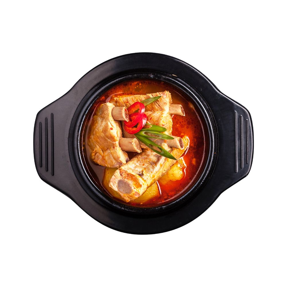 Spicy soup with pork ribs. Острый суп со свиными ребрышками и картофелем.